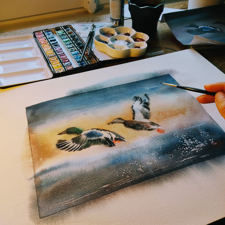 L'aquarelle et le graphisme sont des œuvres réalisées avec légèreté et expressivité, alliant transparence des couleurs et clarté du trait. Elles transmettent l'ambiance, les émotions et la beauté des détails grâce à la délicatesse des nuances et à la précision graphique.